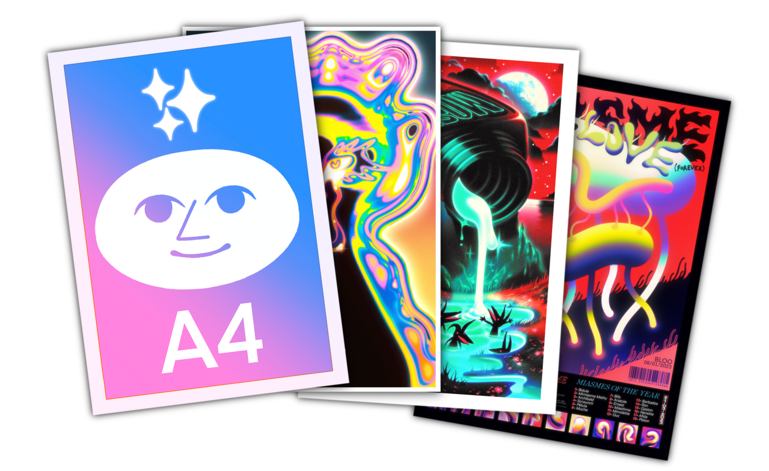 L'offre "Quadruple A4" vous permet pour l'achat de trois A4 (n'importe lesquels) d'en obtenir un GRATUIT ! (selon une sélection de print comportant : FASHION / Chasseur D'Oursin / MIASME / The Divine Chord / SpaceHead / Cavalry)